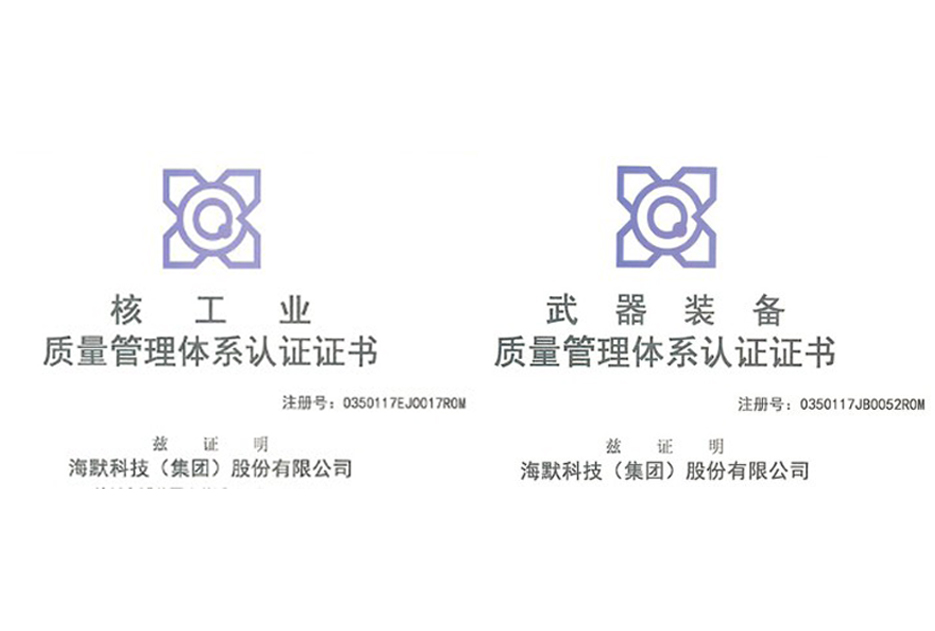 球盟会获得武器装备质量管理体系及核工业质量管理体系双认证